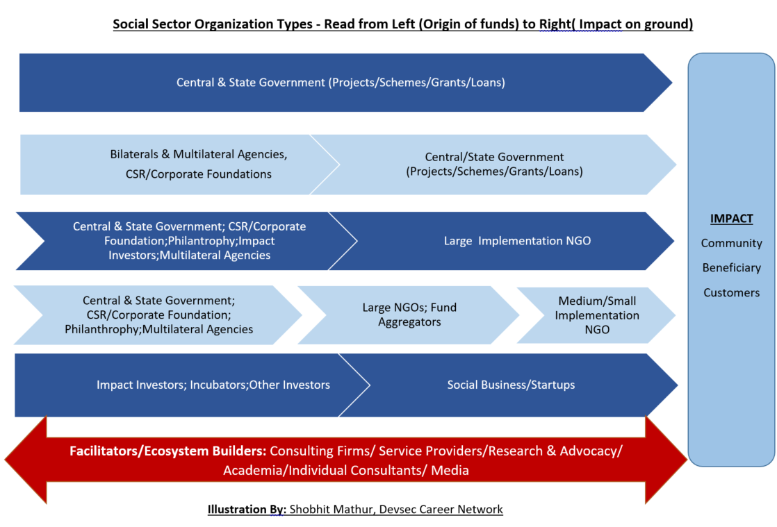 Many of us look at only CSRs, NGOs & Consultancies as the potential employment avenues. But that's not the case. In this article, I'll take a birds eye view of the social sector ecosystem.